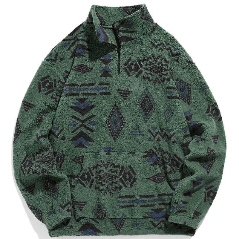 💥 2025 Hot Sale!Men's Fuzzy Pullover Sweatshirt, Print, Stand Collar, Long Sleeve, Suitable For Daily Casual, Commuting, Street Fashion, Warm Winter New Style