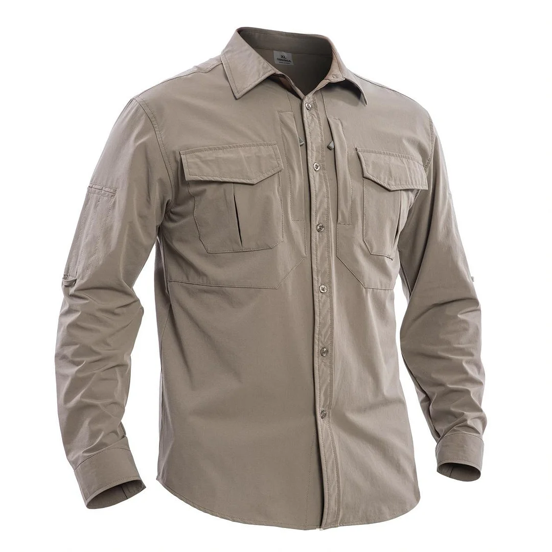 💥 70% OFF – Ends Tonight! Men's Quick-drying Long-sleeved Shirt, Lightweight, Breathable, Stretchy, Casual Workwear, Multiple Pockets - Casual Outdoor Sports Shirt for Hiking and Fishing
