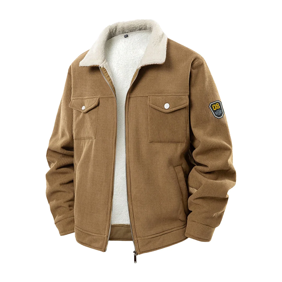💥 2025 New Arrivals! 1pc Men's Corduroy Collar Long Sleeve Jacket, Thermal Lined, Comfortable For Autumn/Winter, Versatile For Daily Wear And Commute, Machine Washable, Old Money Style Gift For Halloween