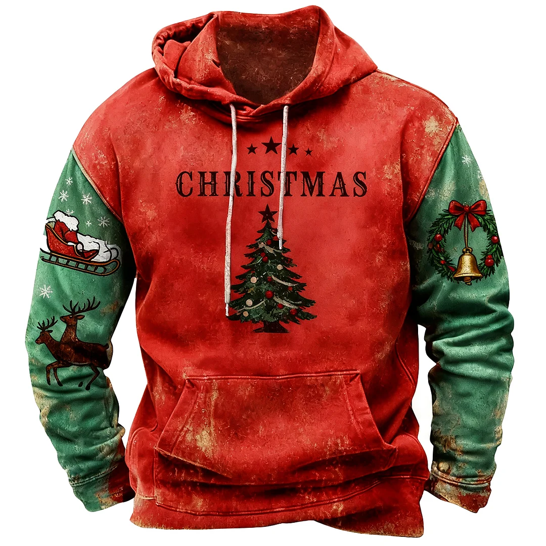 3D Print Christmas Ugly Sweater Retro Color-blocked Men's Hooded Sweatshirt
