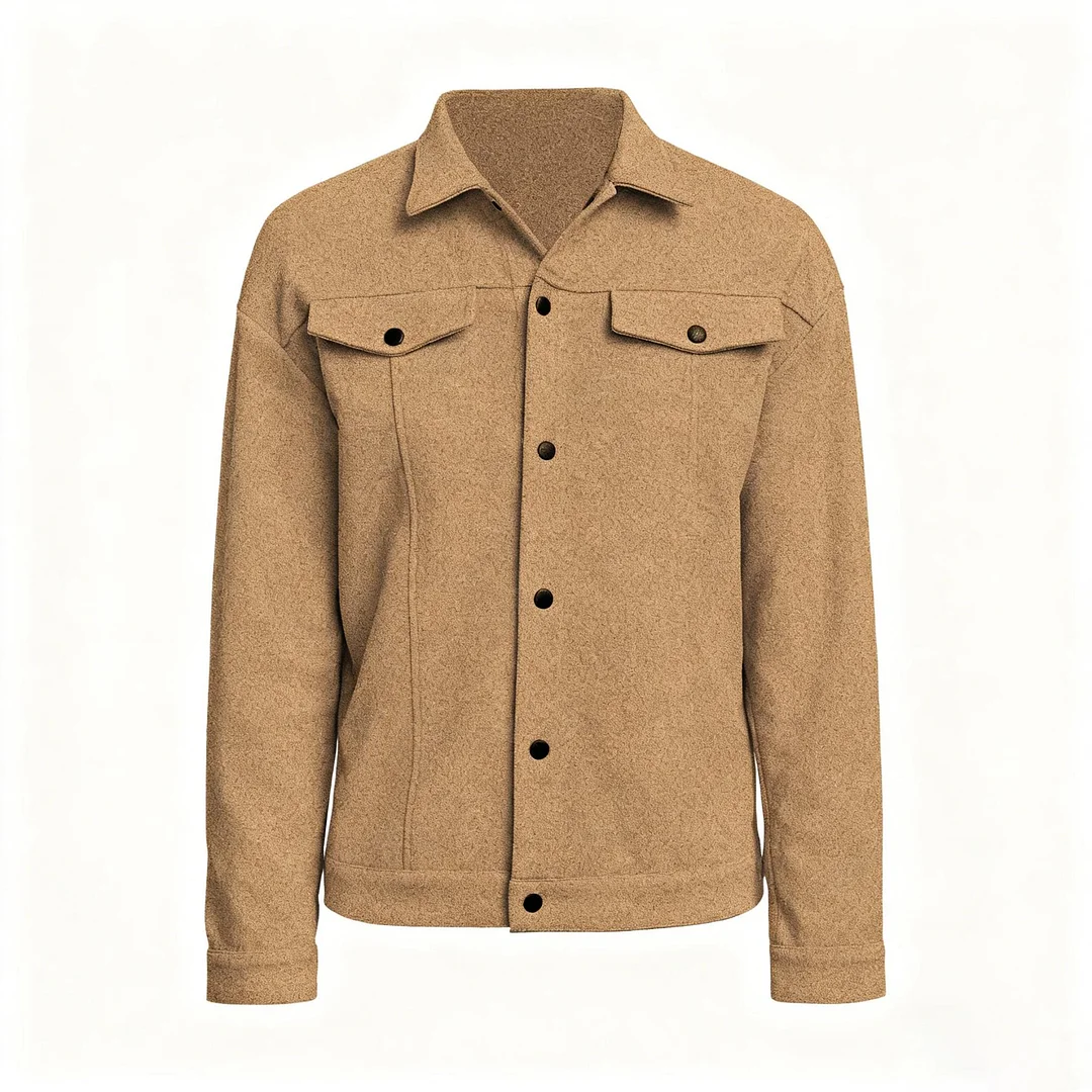 💥 2025 Hot Sale! Homme Men's Casual Solid Color Button-Up Long Sleeve Western Jacket, Brown Jacket, Fall Winter