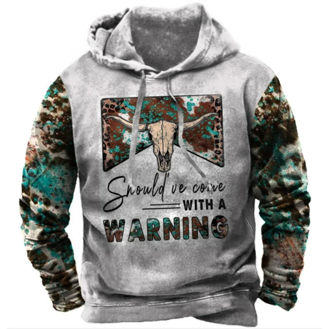 💥 2025 Hot Sale!Hot-Selling Western Bull Head Cool Retro Casual Cow Print Women's Hoodie, Perfect For Fall And Winter, Keeps You Warm.