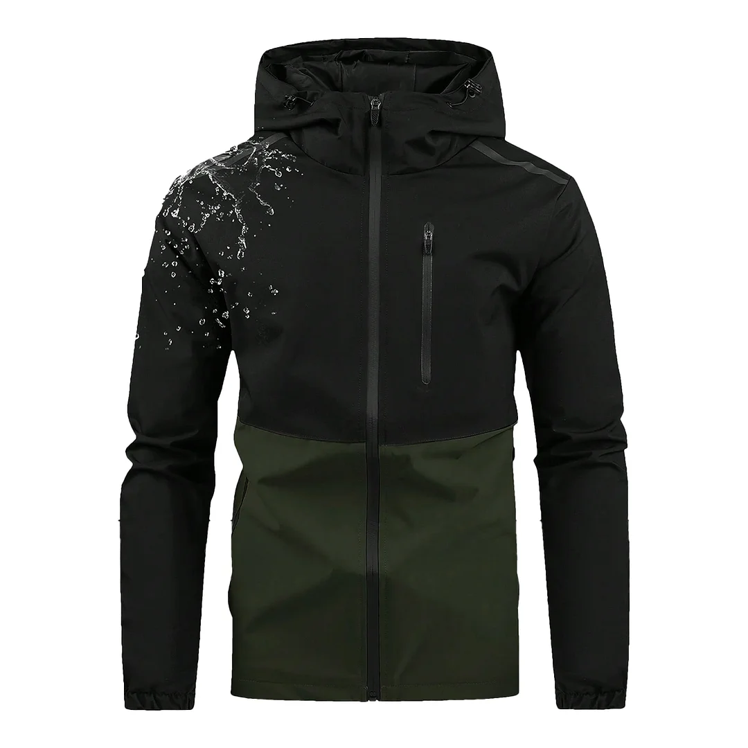 Men's Drawstring Hood Waterproof Casual Versatile Zippered Pocket Windbreaker, Practical Everyday Wear, Fall