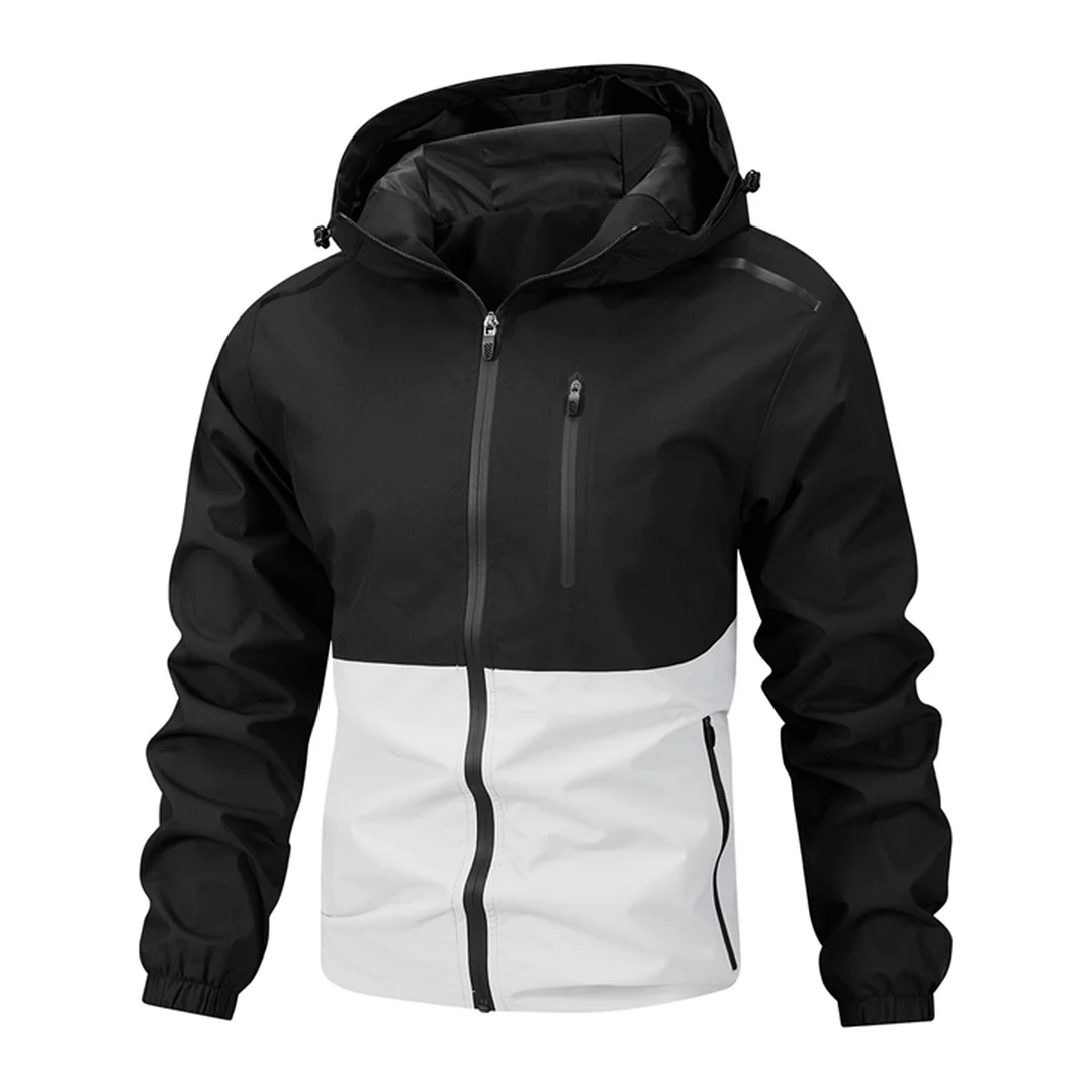 Men's Drawstring Hood Waterproof Casual Versatile Zippered Pocket Windbreaker, Practical Everyday Wear, Fall