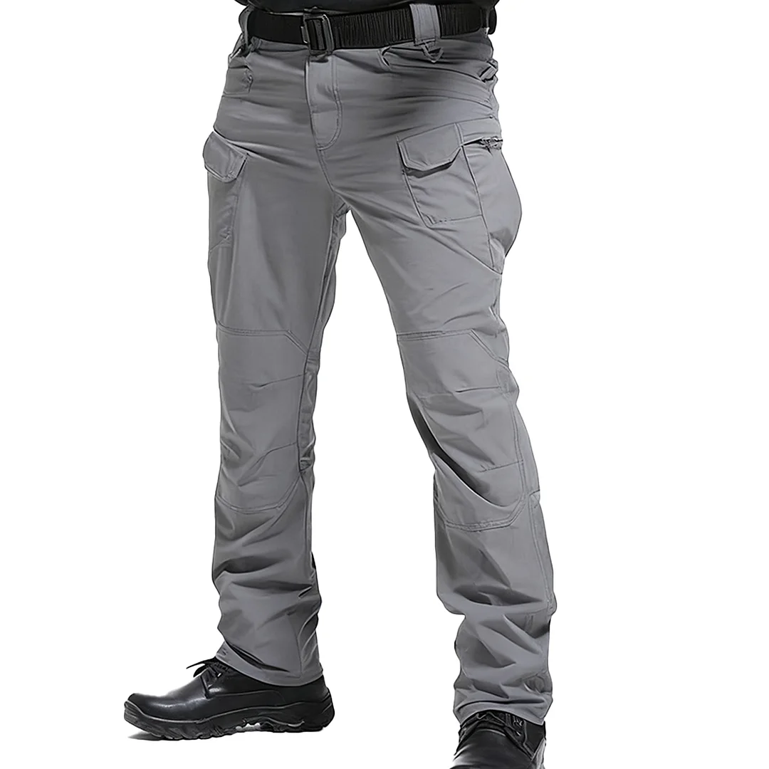 Men's Durable Multi-pocket Work Pants, Tactical Straight-leg Design, Suitable for Hiking and Casual Wear, Black Polyester, Loose Fit with Internal Zipper, Suitable for Outdoor Adventures