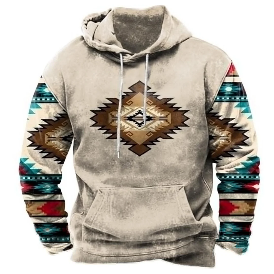 💥 2025 Hot Sale!Men's Ethnic Graphic Hoodie, Tribal Print, Casual 3D Sweatshirt, Vacation Wear, Street Style Sweatshirt
