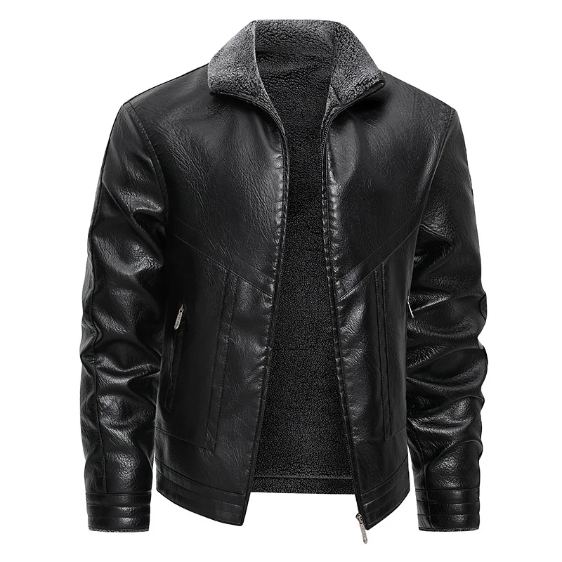 💥 2025 Hot Sale! Men's Leather Jacket Winter Coat with Fleece Collar