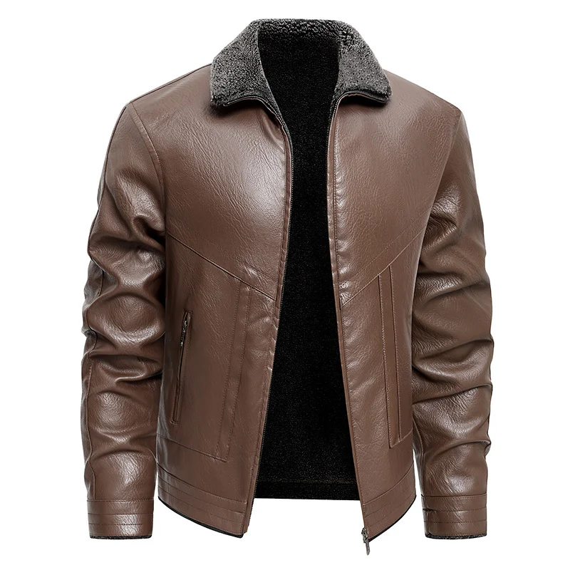 💥 2025 Hot Sale! Men's Leather Jacket Winter Coat with Fleece Collar