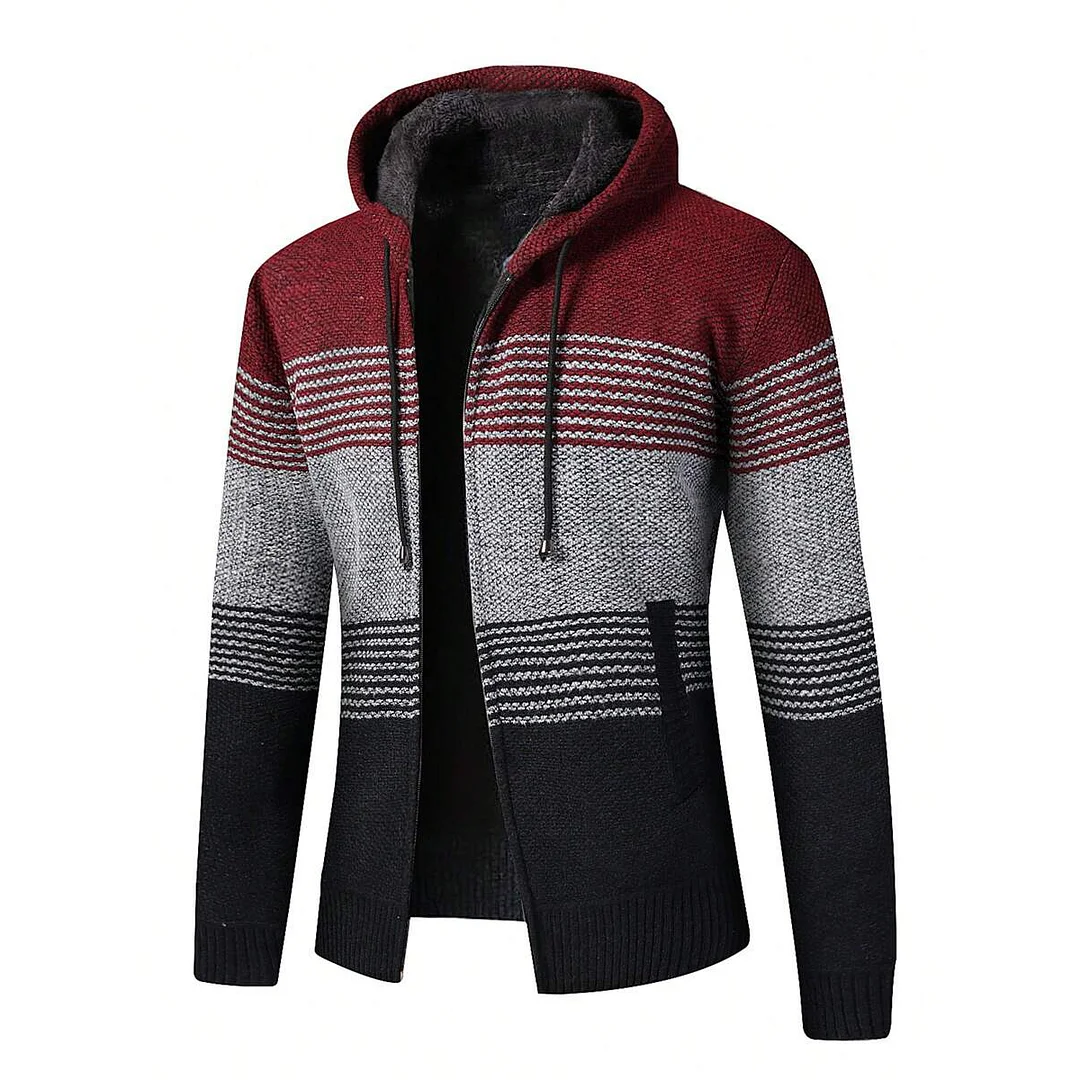 💥2025 New Arrivals!Men's Sweater Striped Contrast Color Knitted Sweater Cardigan Jacket Hoodie Sports Casual Hiking Jacket Zipper Sportswear Autumn And Winter Plus Velvet Thick Warm