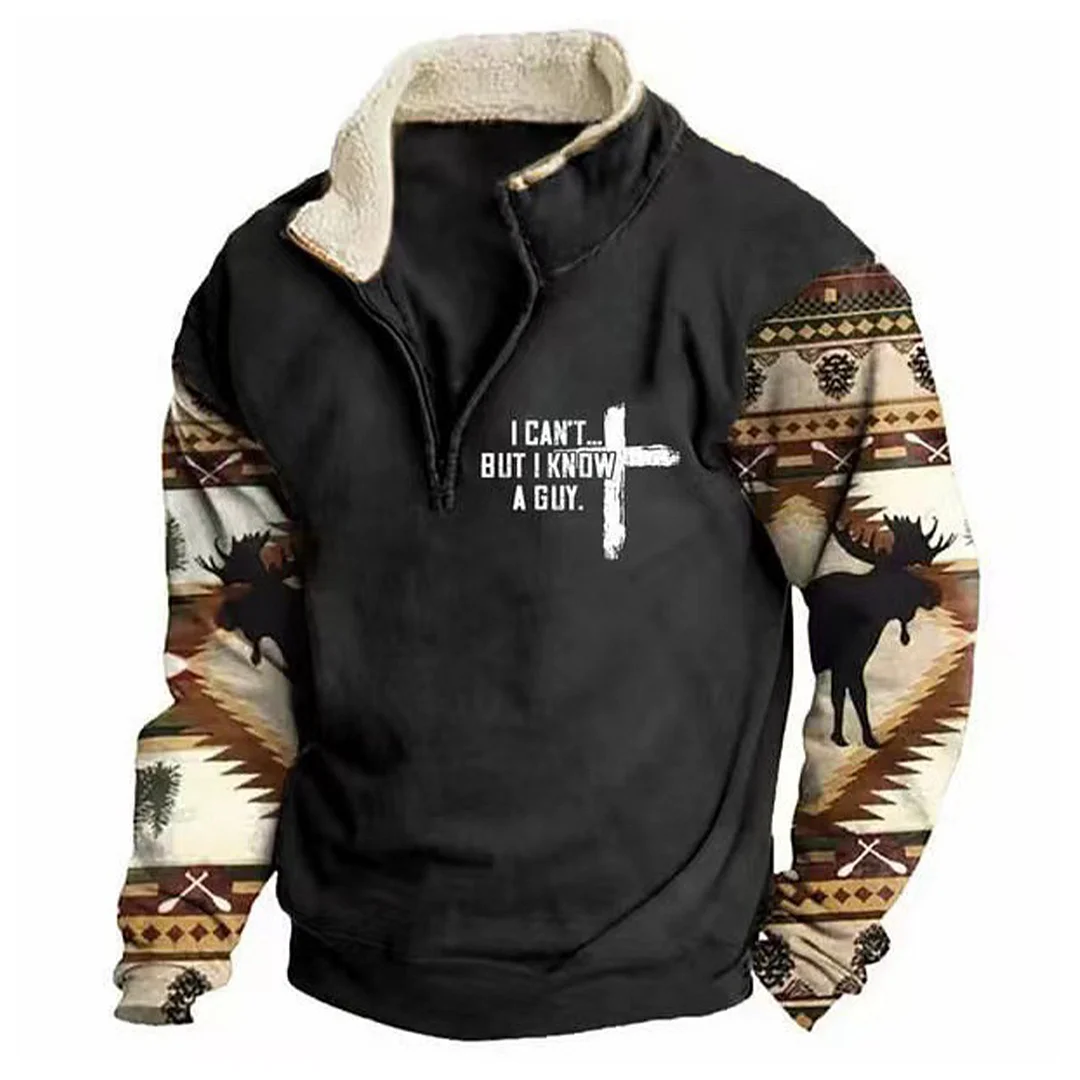 💥 2025 Hot Sale! Mens Western Fleece Jacket Cowboy Bull Head Print Pullover 1/4 Zip Up Stand Collar Country Sweatshirts Western Gifts For Men With Pocket