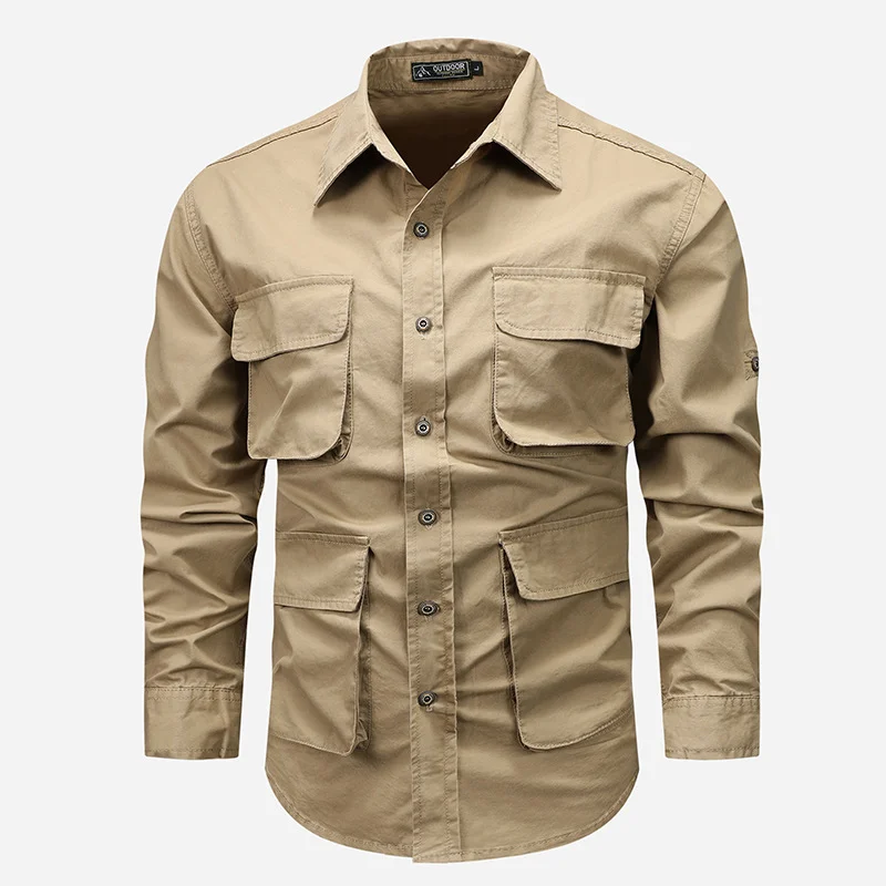 New Men's Solid Color Work Shirt, Everyday Casual Shirt with Pockets