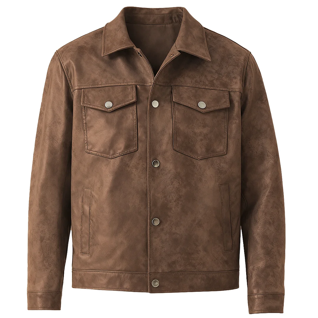 💥 2025 Hot Sale! Roughcore Men's Long Sleeve Single-Breasted Casual Loose Suede Fleece Jacket Brown Jacket Men Cropped Men Jacket Men Mocha Bomber Jacket